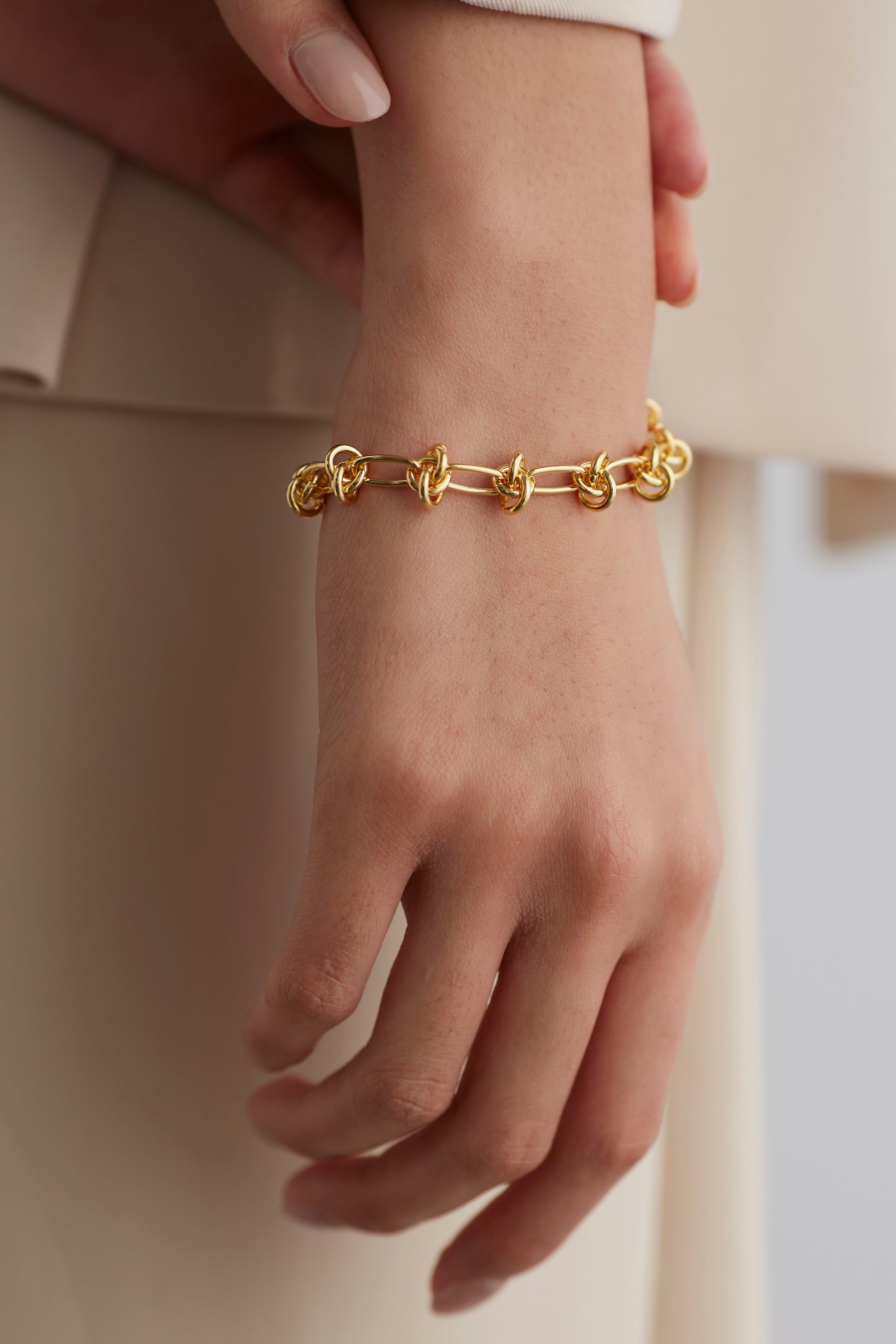Conçu pour s’adapter à tous les genres, ce bracelet en or offre une silhouette épurée qui capte la lumière à chaque mouvement.